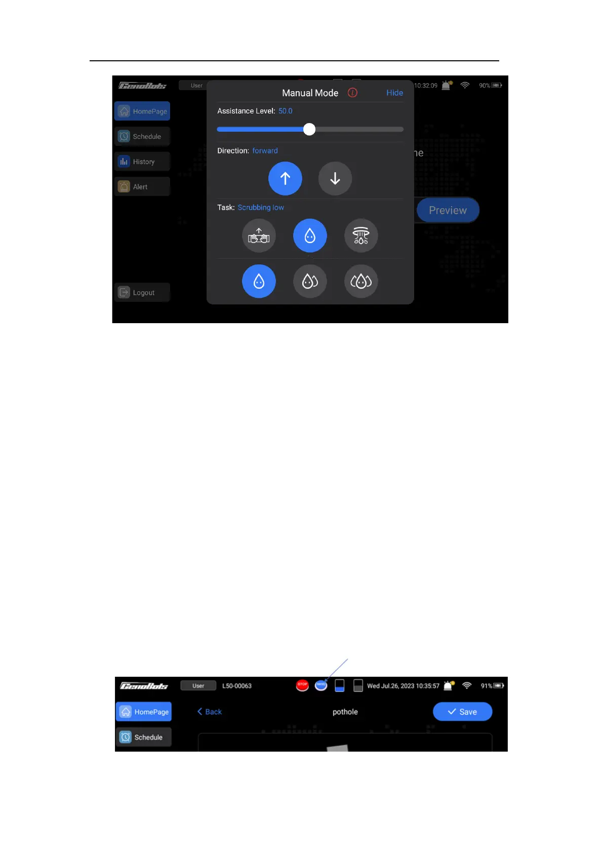 assist button, the machine will move forward. Tap the right icon, the direction of power