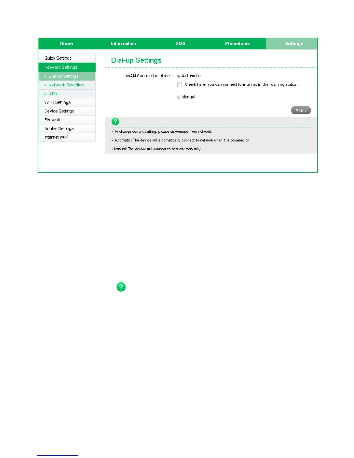 SETTINGS > NETWORK SETTINGS > DIAL UP SETTINGS:
