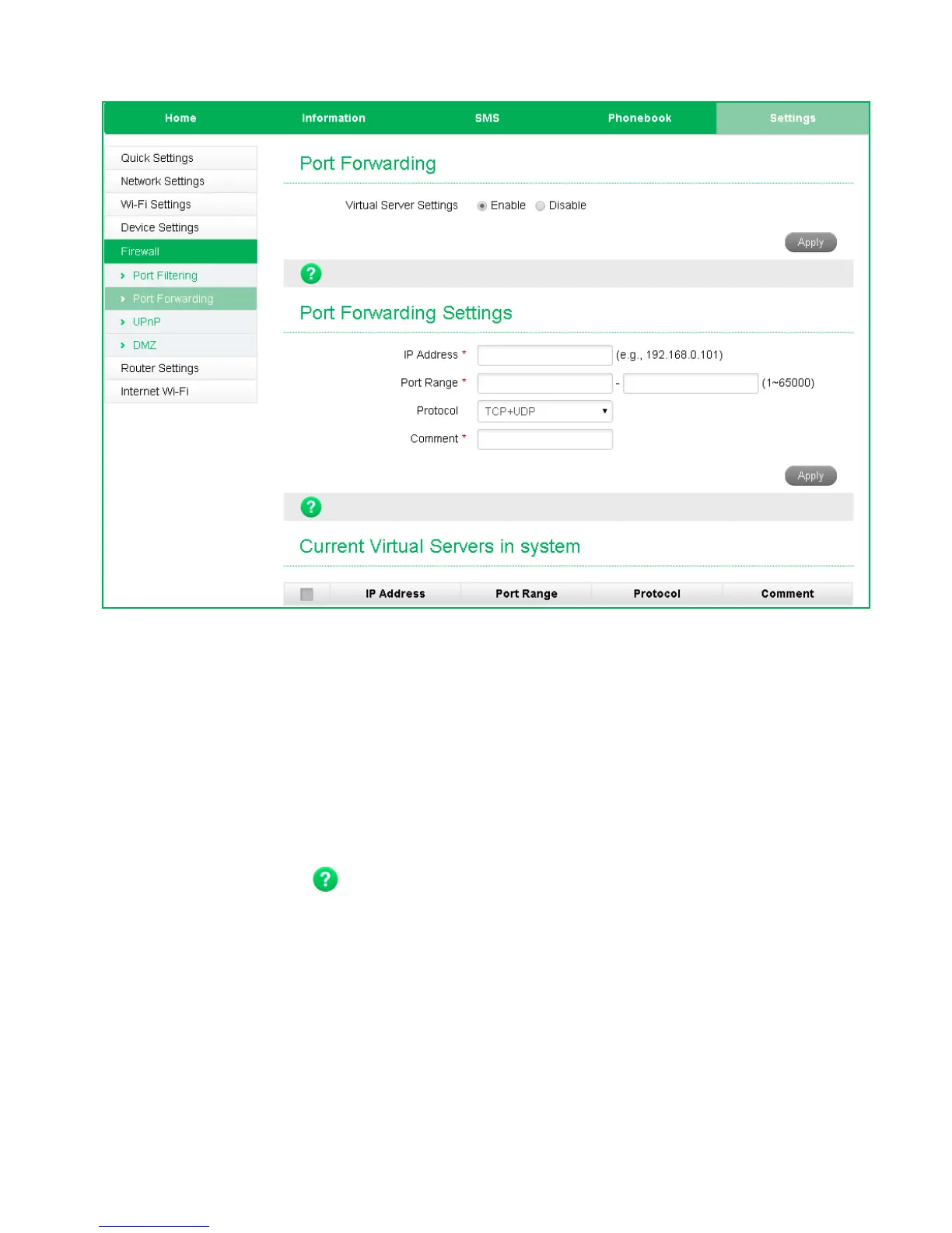 • Select Enable to turn on the port forwarding settings.