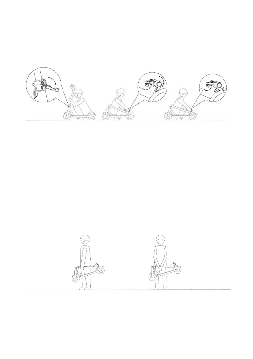 Make sure scooter be off , hold the front pole , loosen a lock lever and lower a