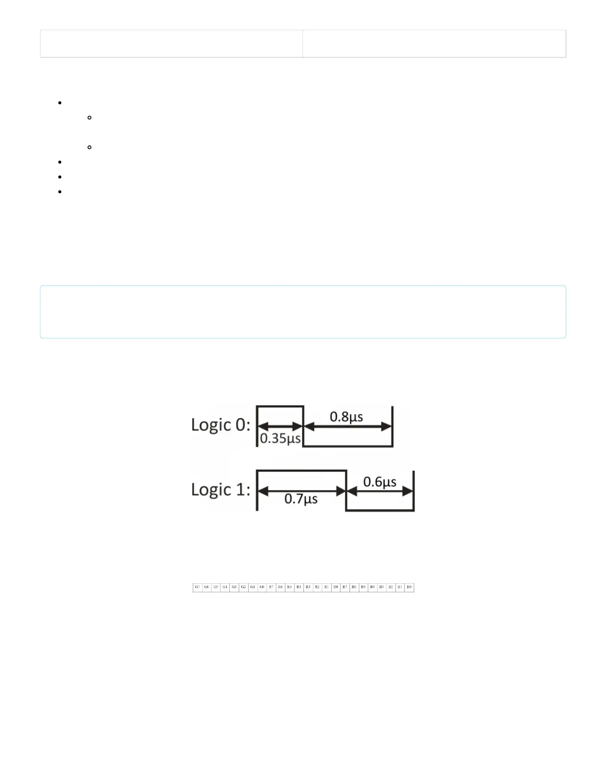 The data is sent in a sequence containing 24 of those bits -- 8 bits for each color -- followed by a low "reset" pulse