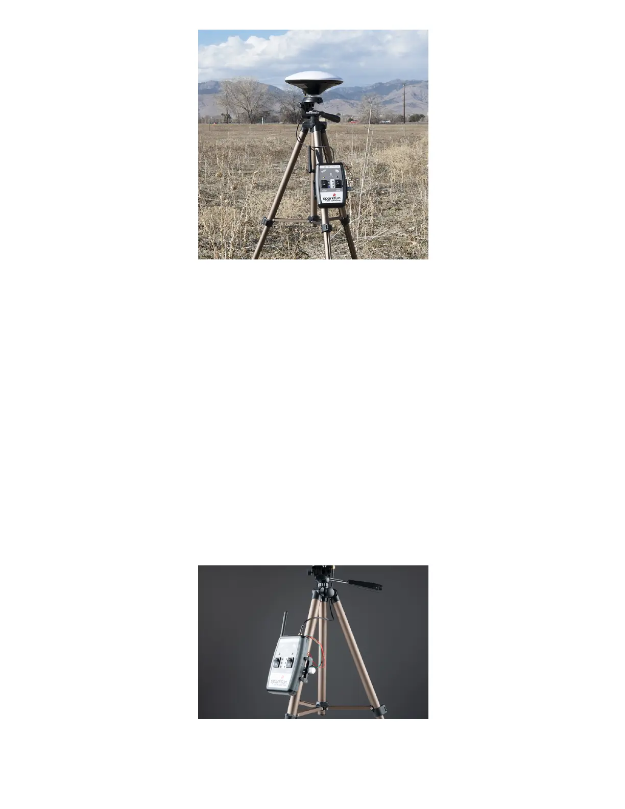 and rickety. A cell phone holder is clamped to the tripod and the RTK Surveyor is held in the clamp. The ¼”