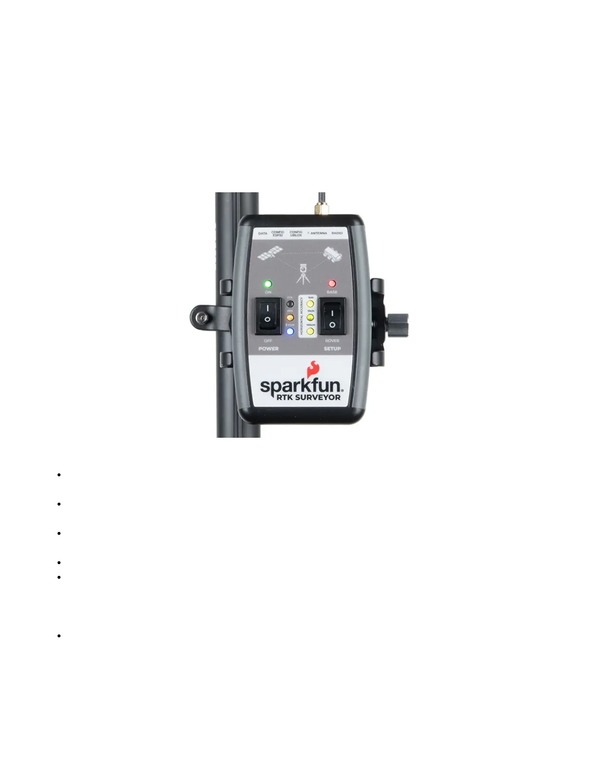 level. The RTK Surveyor has a built-in 1000mAh lithium polymer battery that will enable up to 4 hours of field use