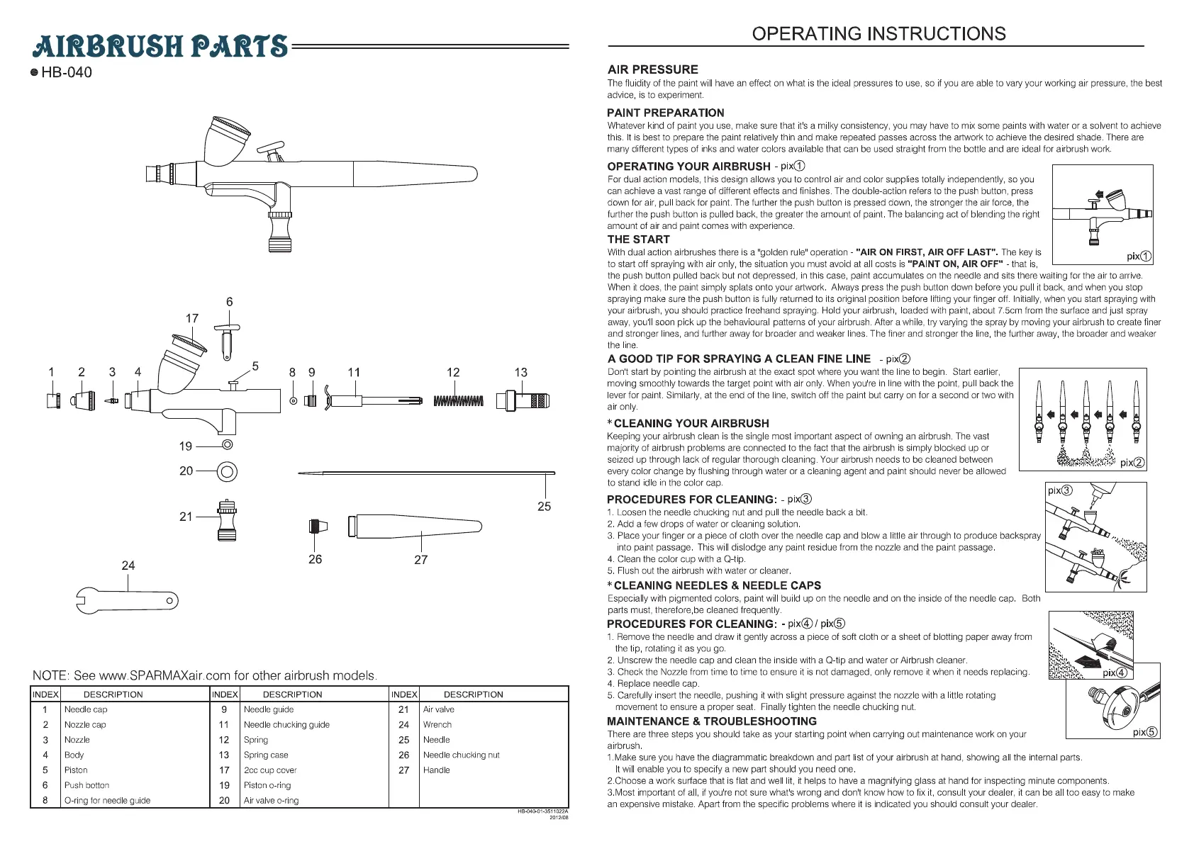 Sparmax ARISM mini - Airbrush Operating Instructions; Air Pressure and Paint Preparation; Operating Your Airbrush; Cleaning Your Airbrush