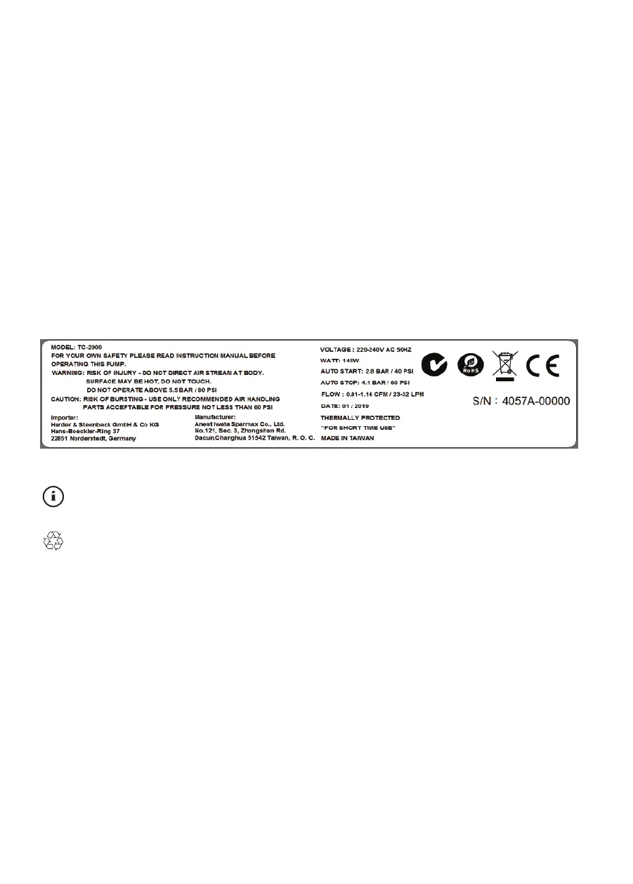Bitte stellen Sie nach dem Auspacken sofort sicher, dass der Kompressor keine Transportschäden auf-