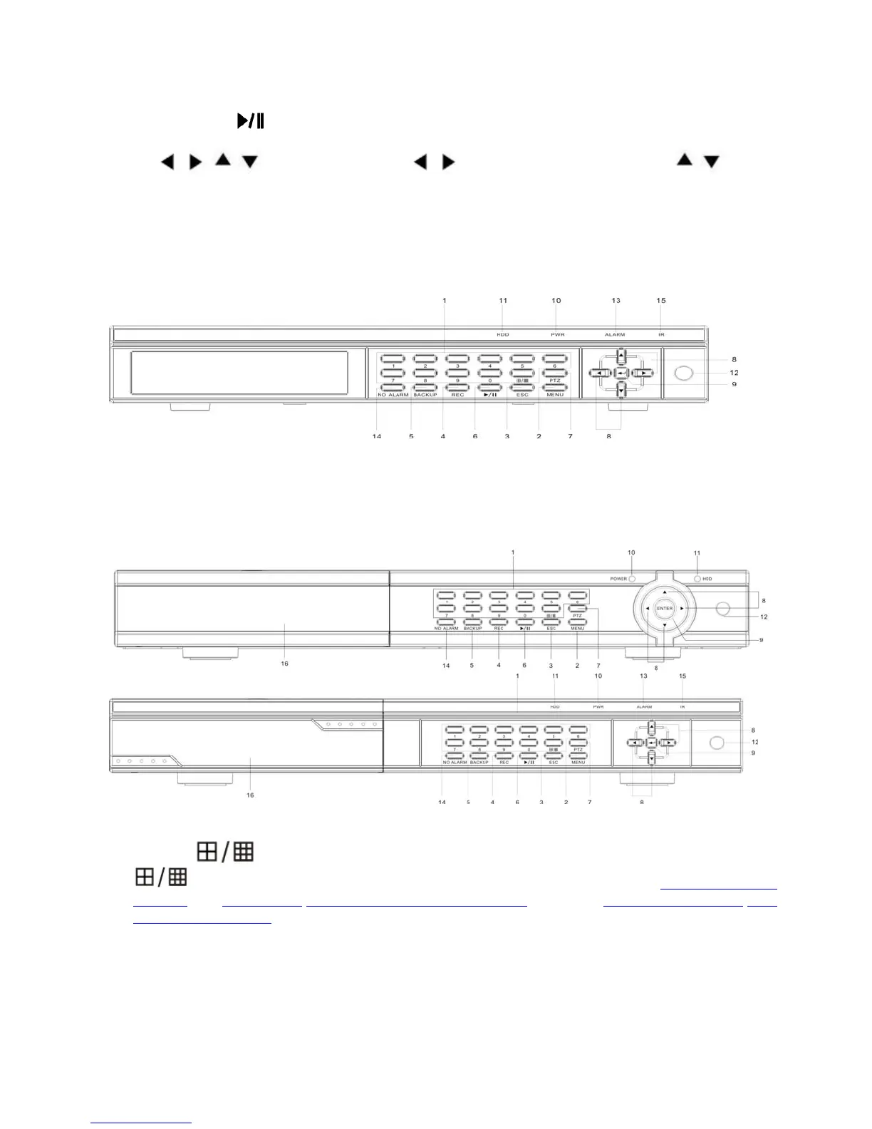 Key buttons 2 ~ 12 are same as 4CH DVR, except: