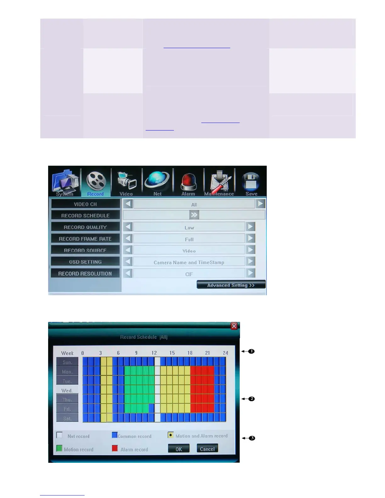 Select channel number for apply record setting. Select [ALL] for apply to all channels.