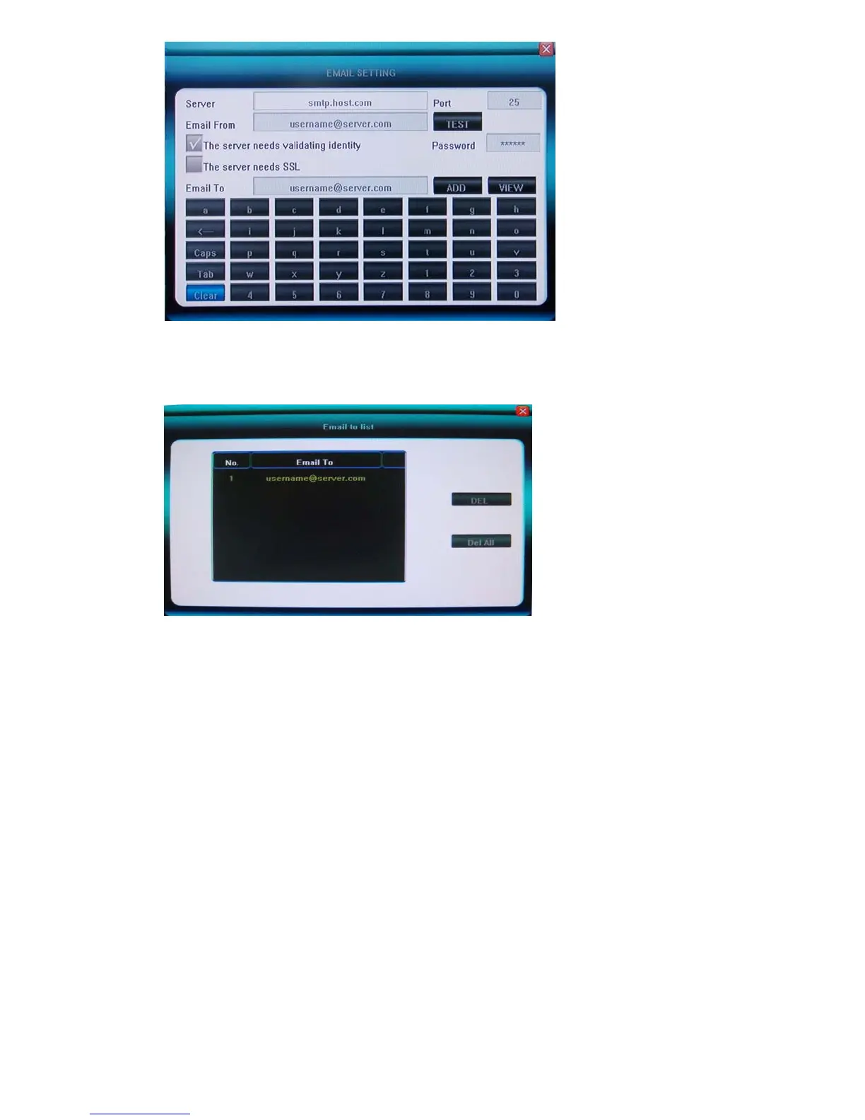 The Email To field indicates the recipients of alarm emails, and the Email From field indicates the