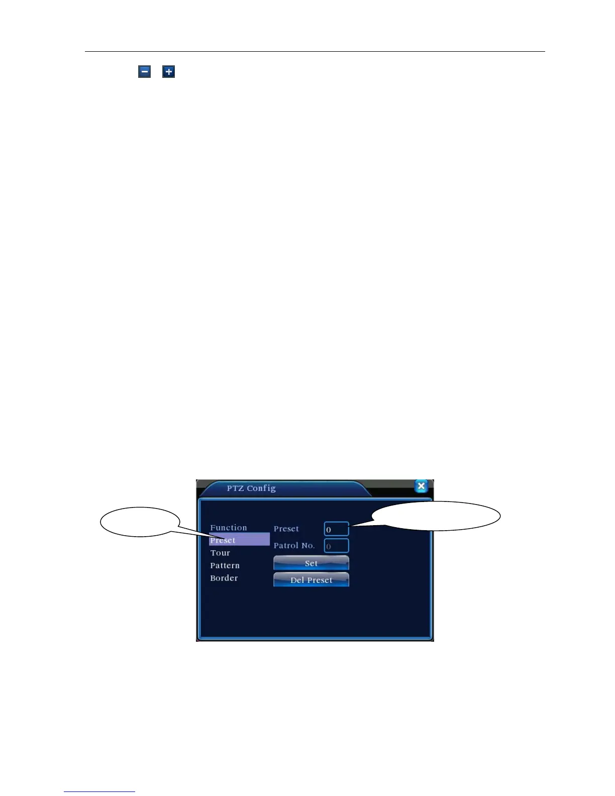 blank, write the preset points, then click Preset button, PTZ turn to the corresponding preset point.