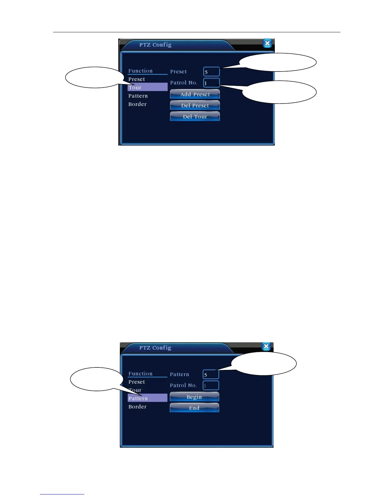 In Picture 3.10, click Page Shift button, enter PTZ control menu as shown in Picture 3.12. Please input the