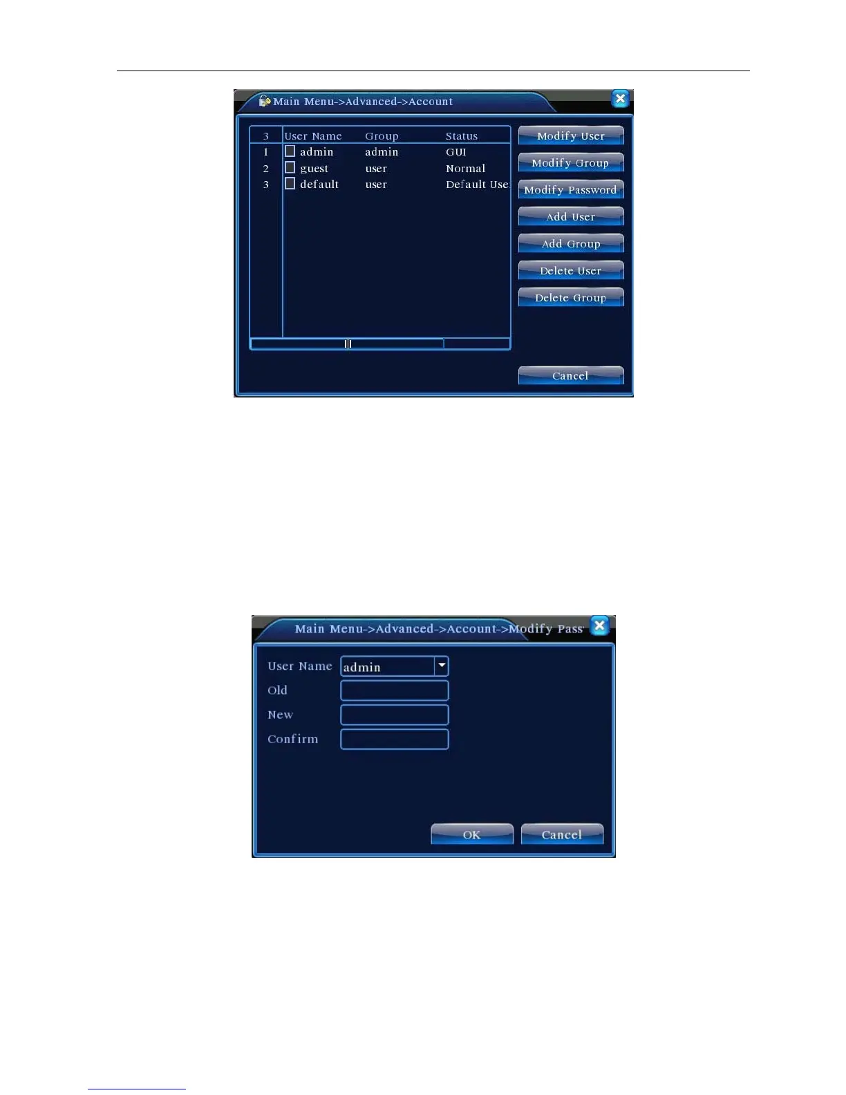 Note:The user who possess the user control purview can modify his/her own or other users password