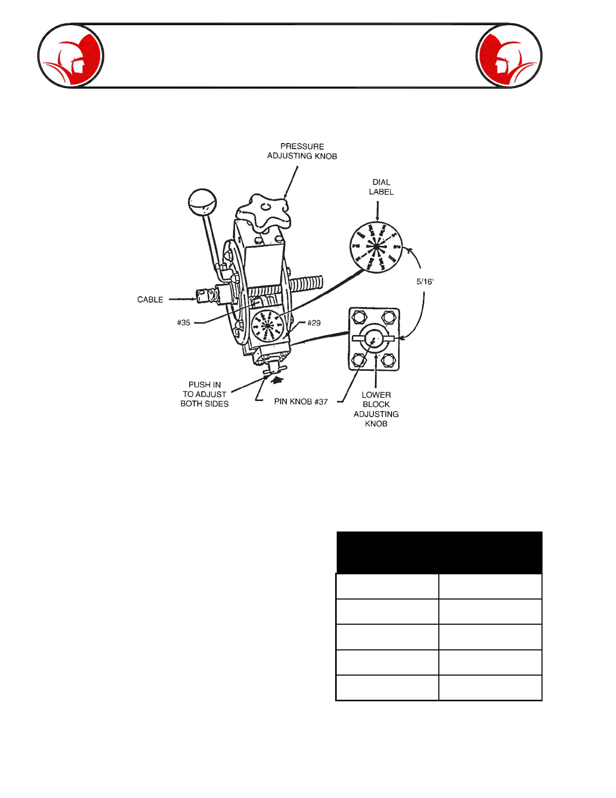 To adjust for cable size, push in on the pin knob (#37) located on the bottom of the bearing blocks