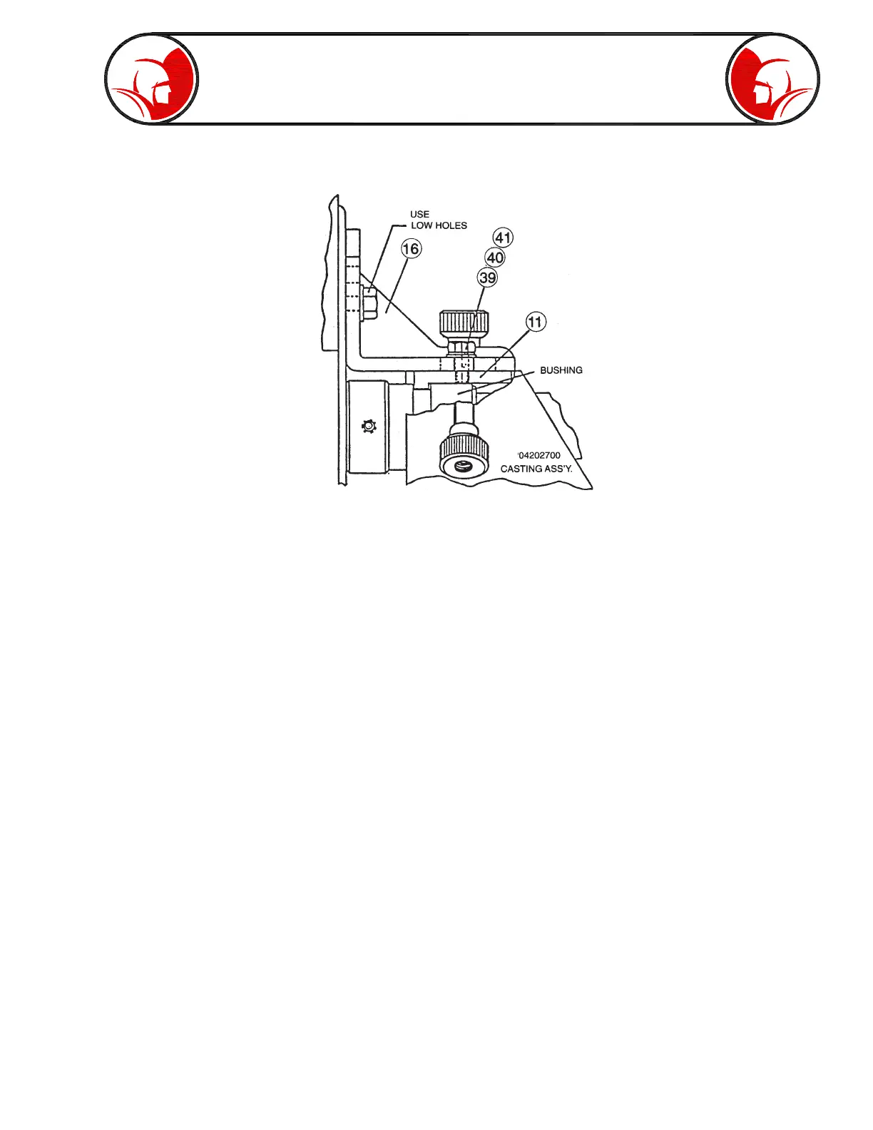 3. Install busing lock (#11) to mounting plate (#16) on drive unit. Use items #39, 40, and 41. Position