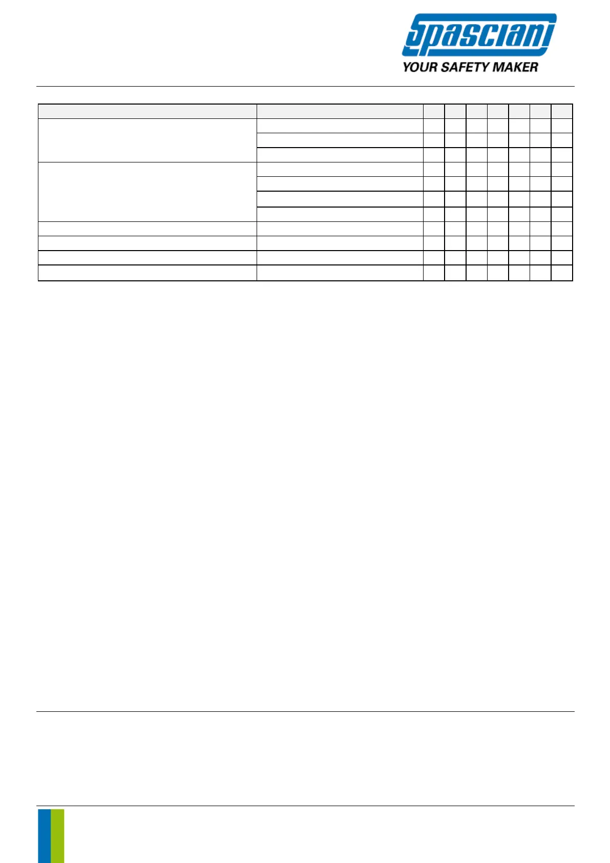 1: Before allowing the use - 2: Before use - 3: After use - 4: Every six months - 5: Yearly - 6: Every three years - 7: Every six years