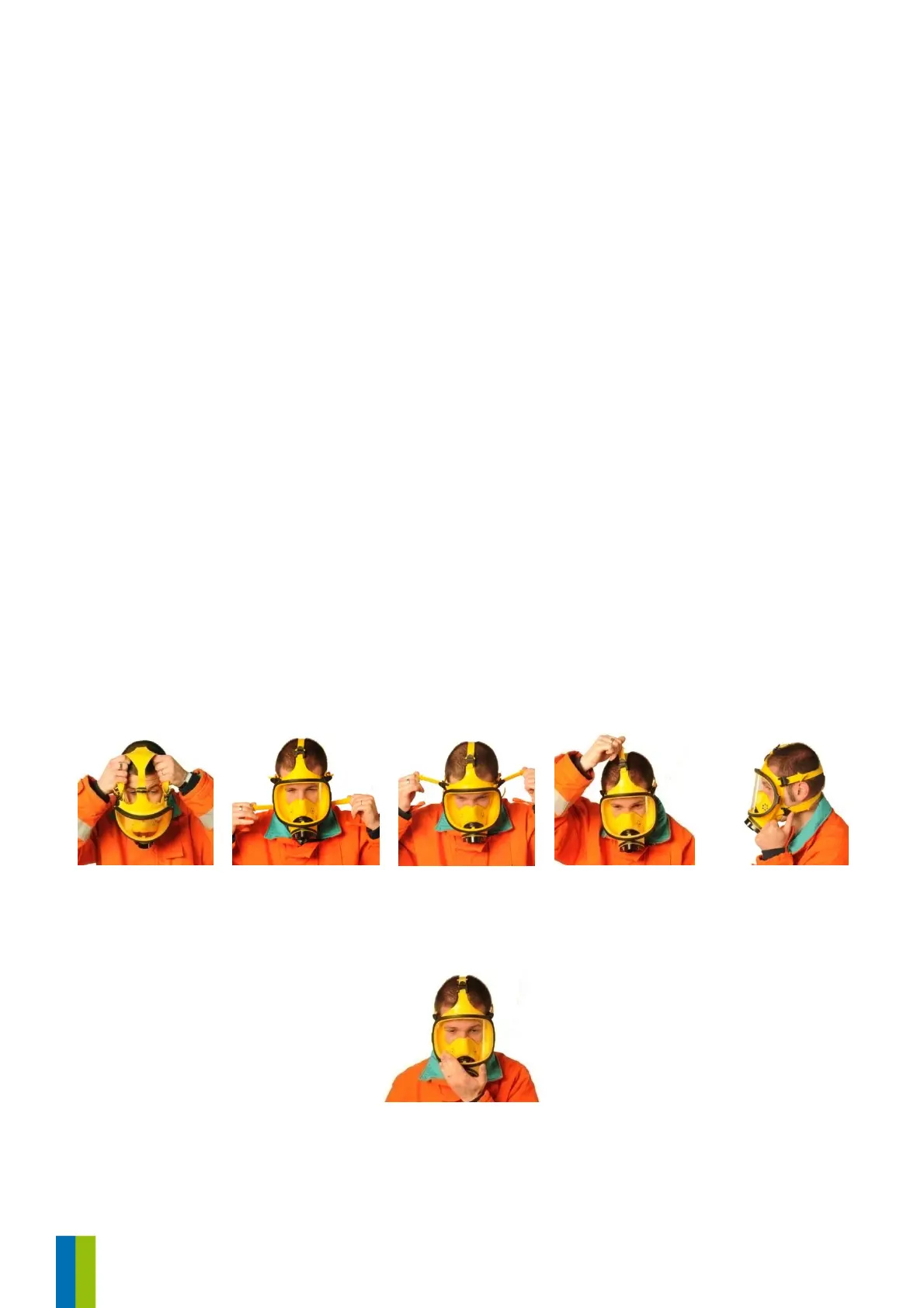 con ambas manos, mientras las estira para poder meter la cabeza en la máscara. Tras colocar la barbilla en su lugar, pase la