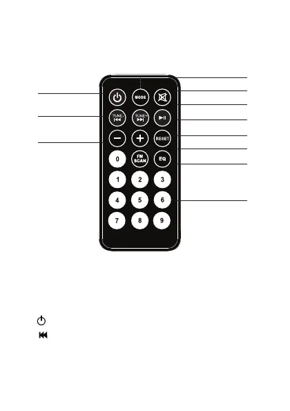 2. Button: Previous song. In radio Mode: reduce FM
