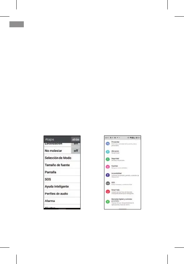 • No Modo Normal, aceda a Denições, e depois a SOS:
