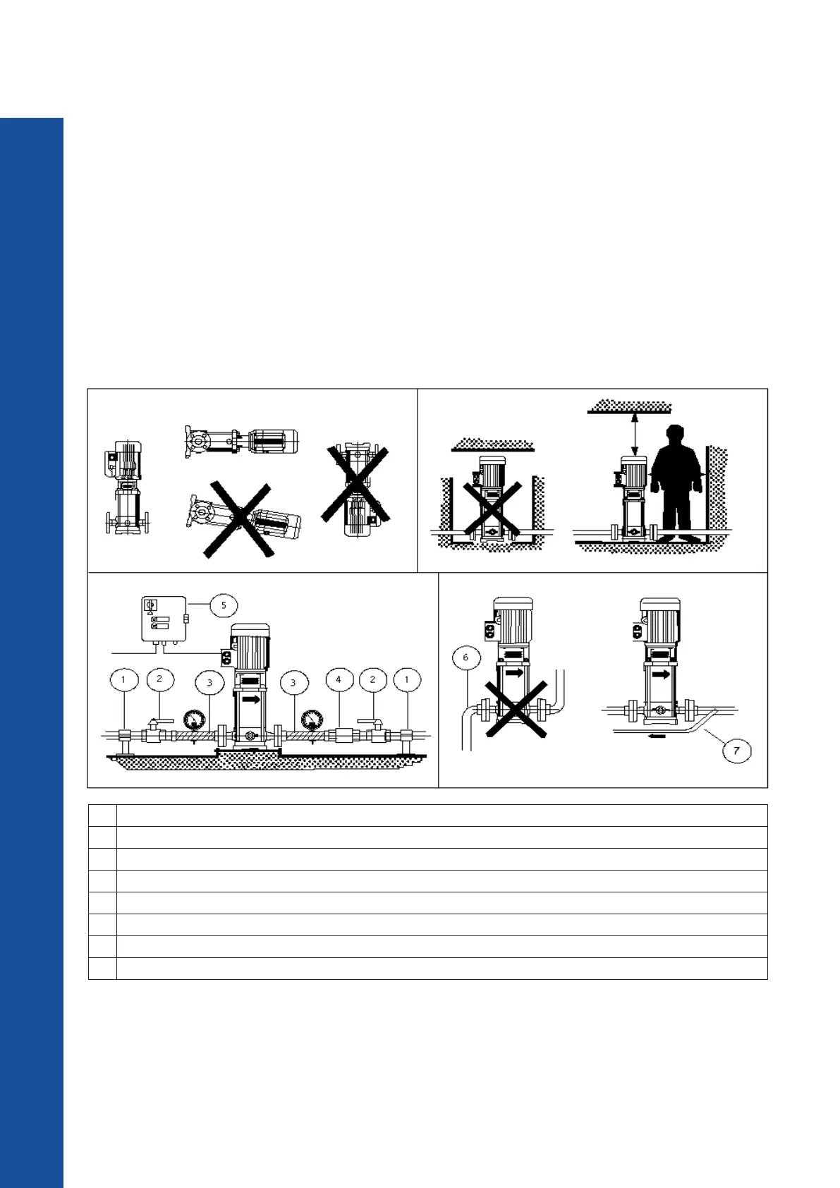 When positioning and installing the pump, follow the installation examples next page in order to avoid damaging the pump.