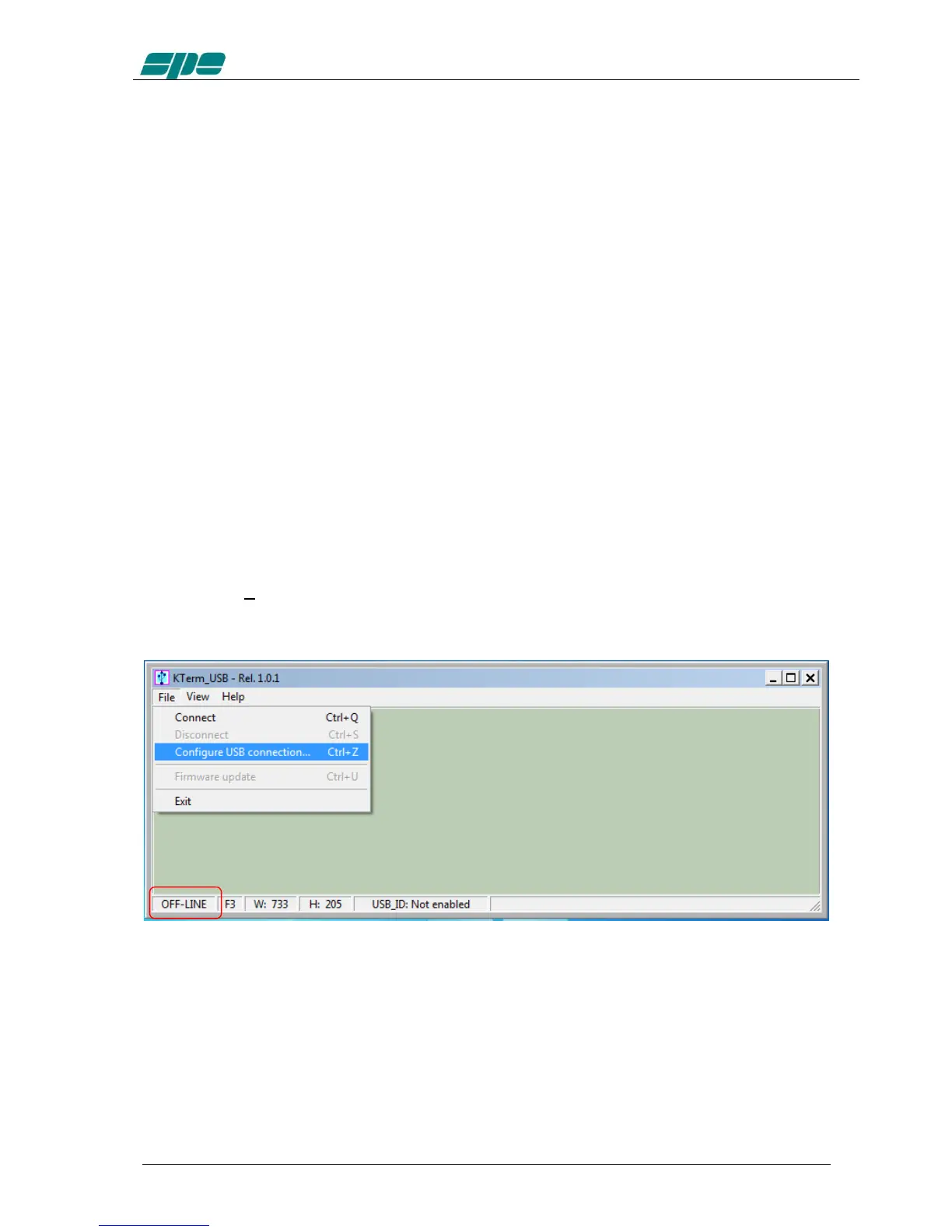 select File/Configure USB connection... from the main menu as shown in the picture