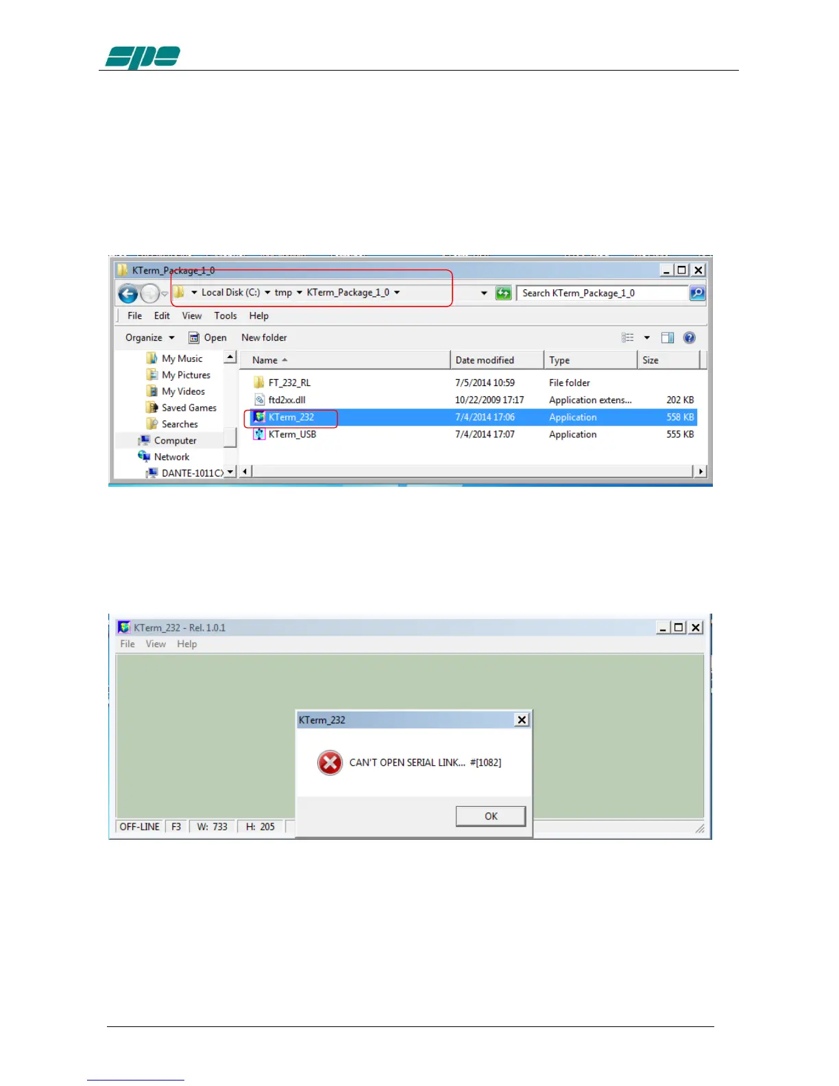 To start running the KTerm_232.exe application, it is necessary to go back into the