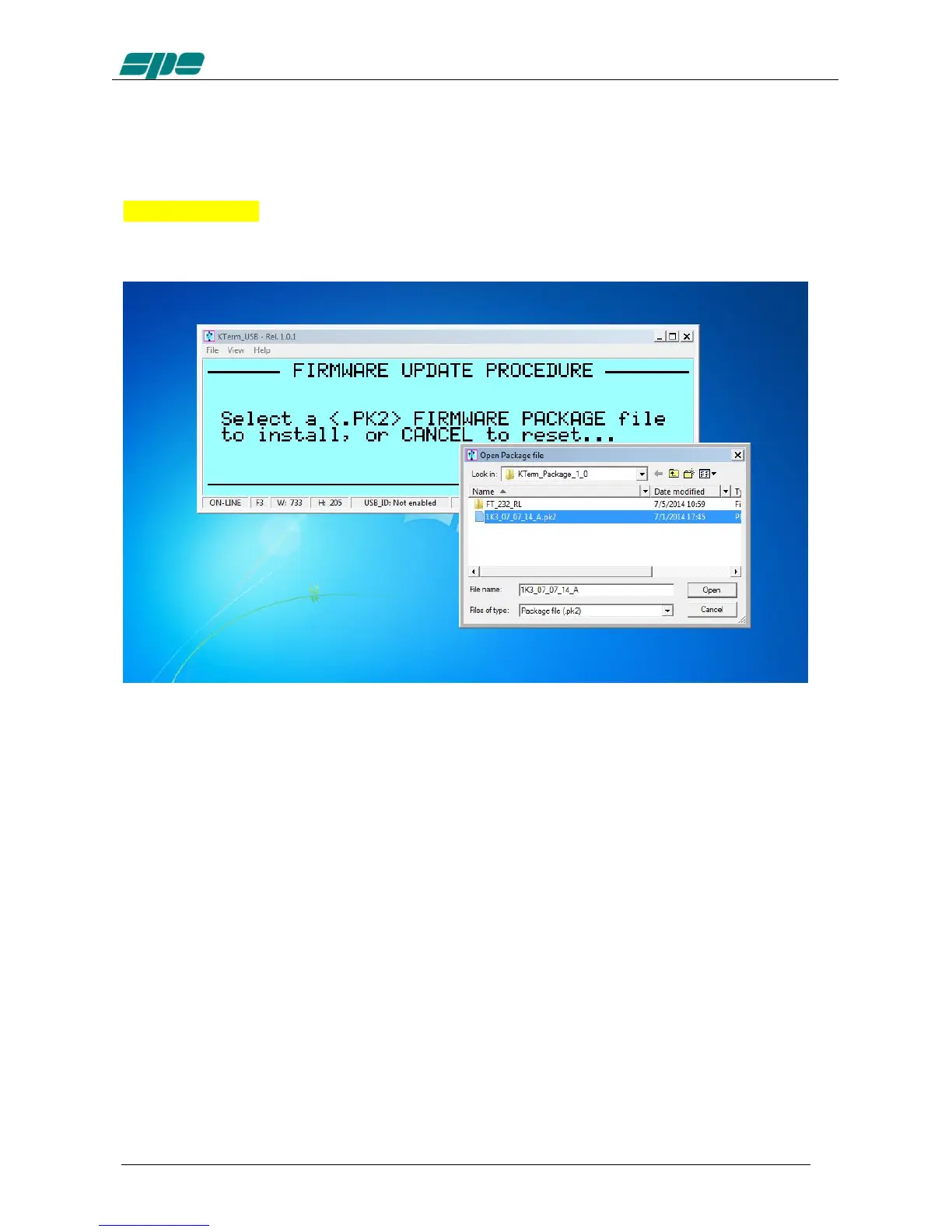 After then a dialog box pops-up, and the user has selected a proper firmware package,