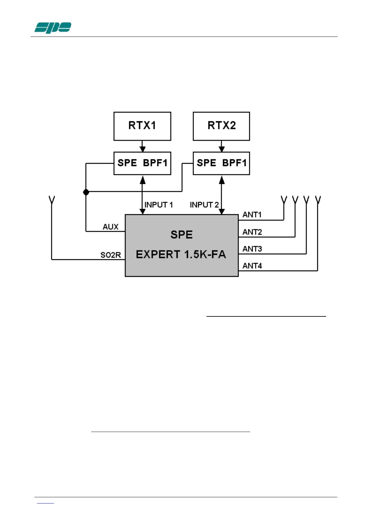 In this case the amplifier is connected to two transceivers and two "SPE BPF1" in order to
