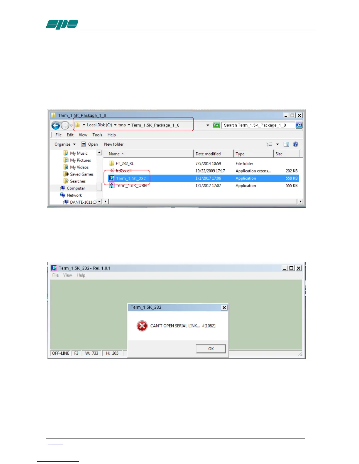 To start running the Term_1.5K_232.exe application, it is necessary to go back into the