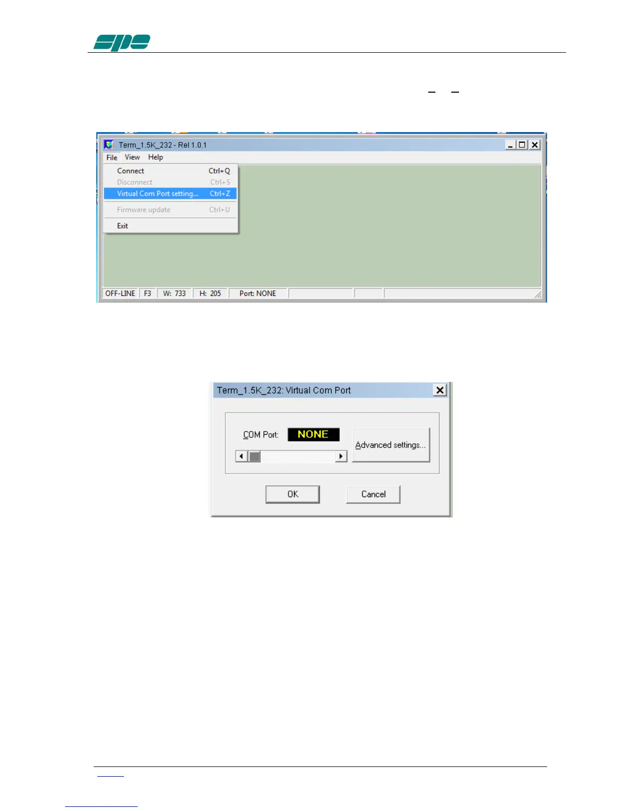 To correct this, click OK on the pop-up window and select File/Virtual Com Port