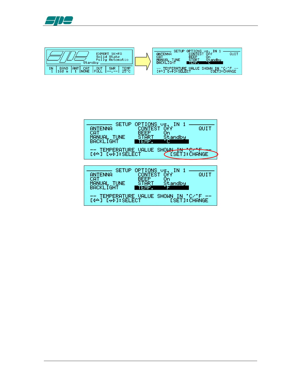 This menu item allows to choose, between the two possible °C/°F (Celsius degrees,