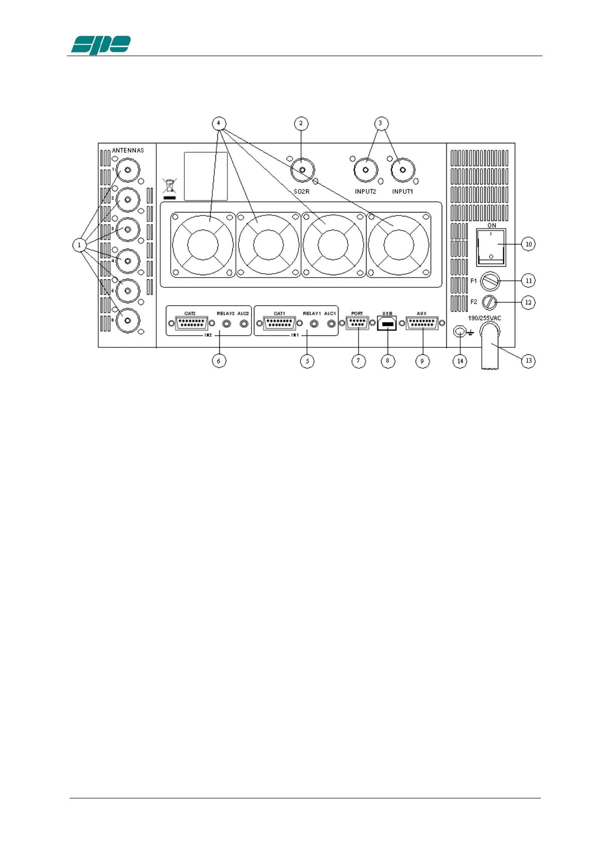 6) IN 2 ALC, RELAY, CAT connectors for exciter 2.