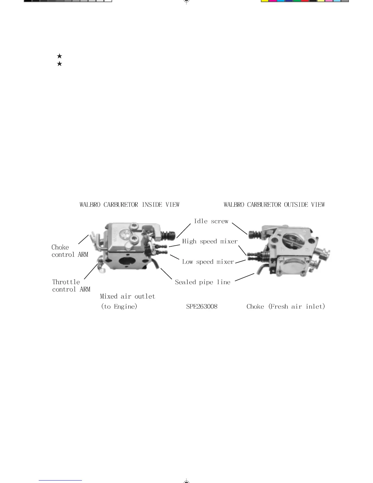much the carburetor valve can close. The low-speed needle “L” adjusts the gasoline-to-air mixture when the