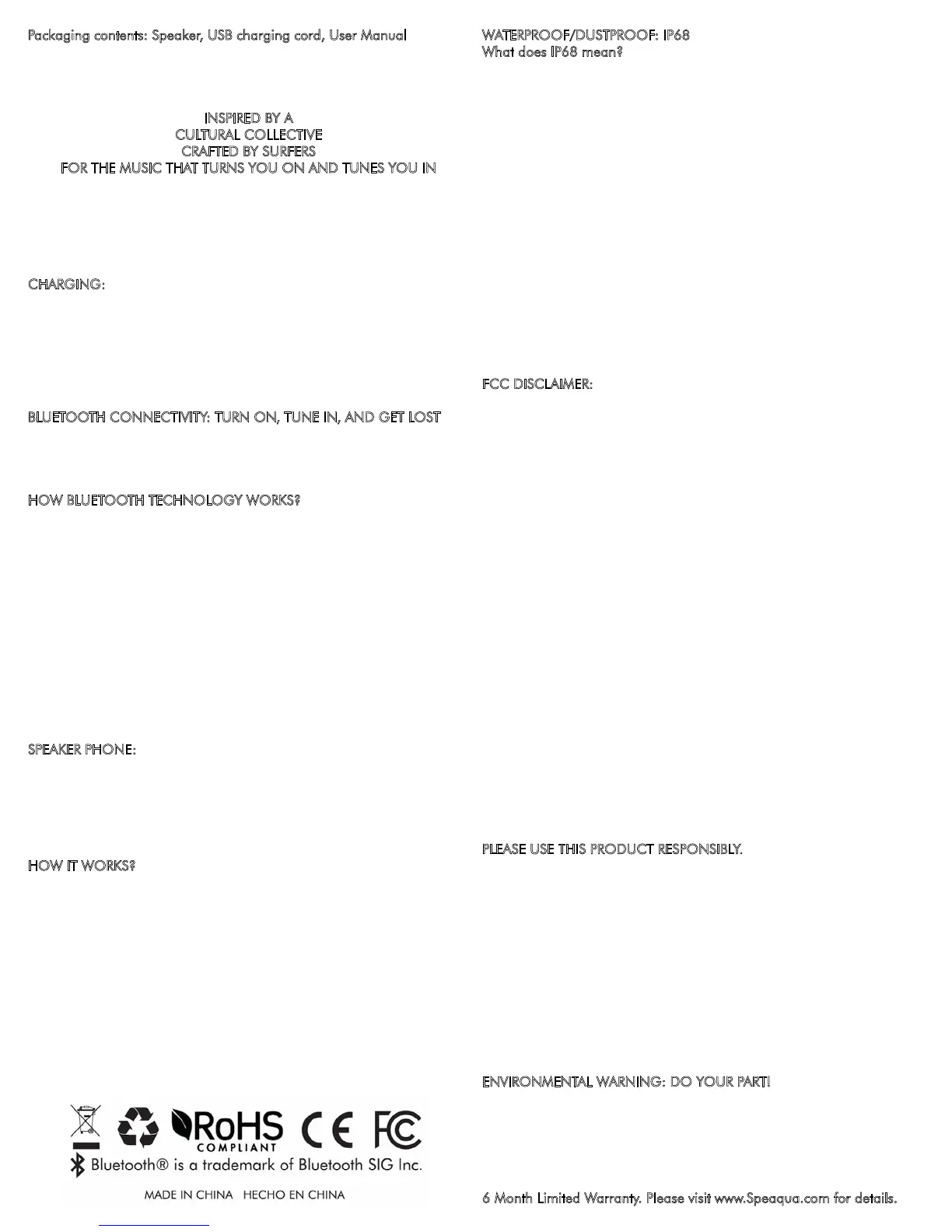 6 Month Limited Warranty. Please visit www.Speaqua.com for details.