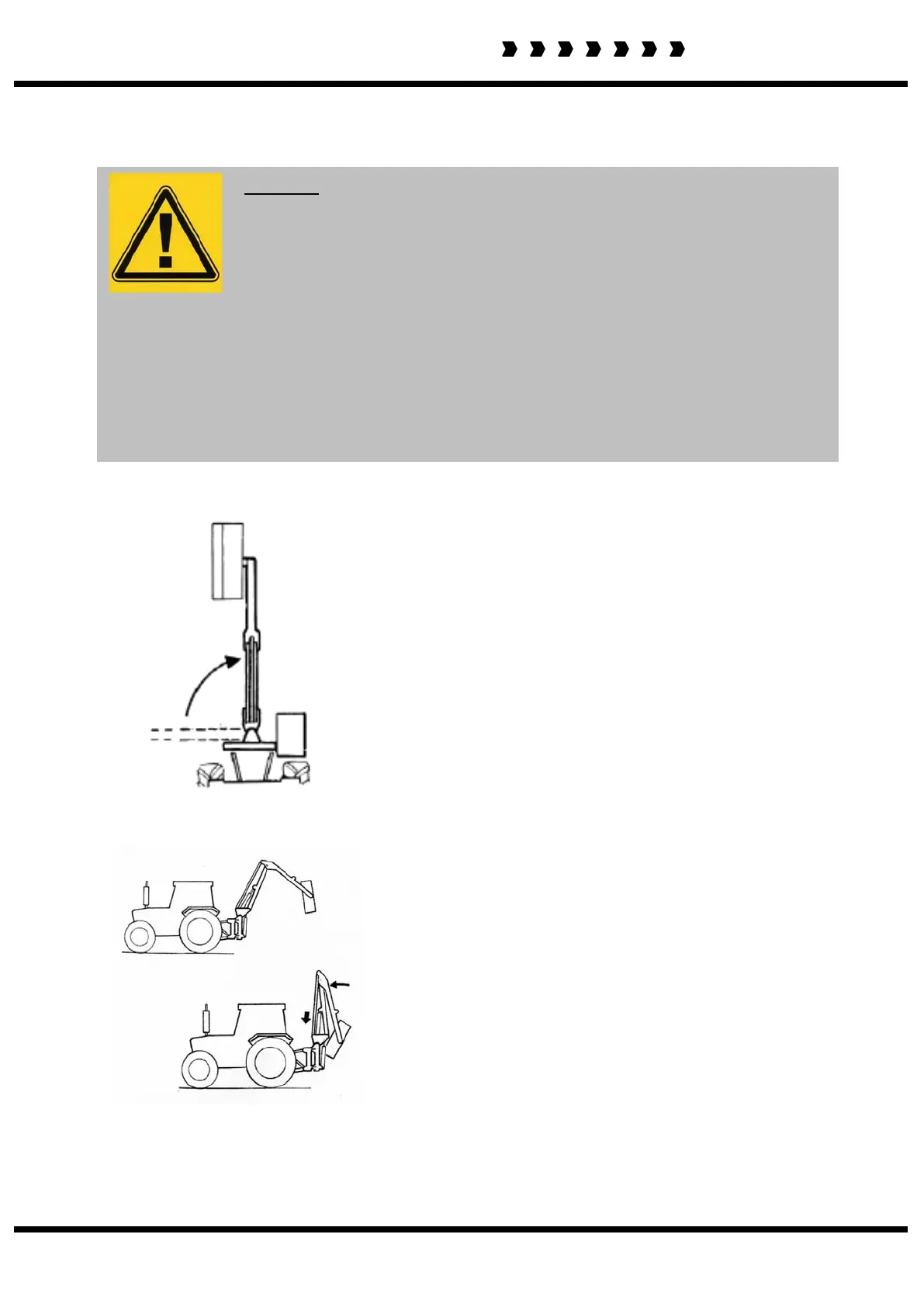 Never travel with the reach arm away from bump stop on the main arm failure to adhere to this