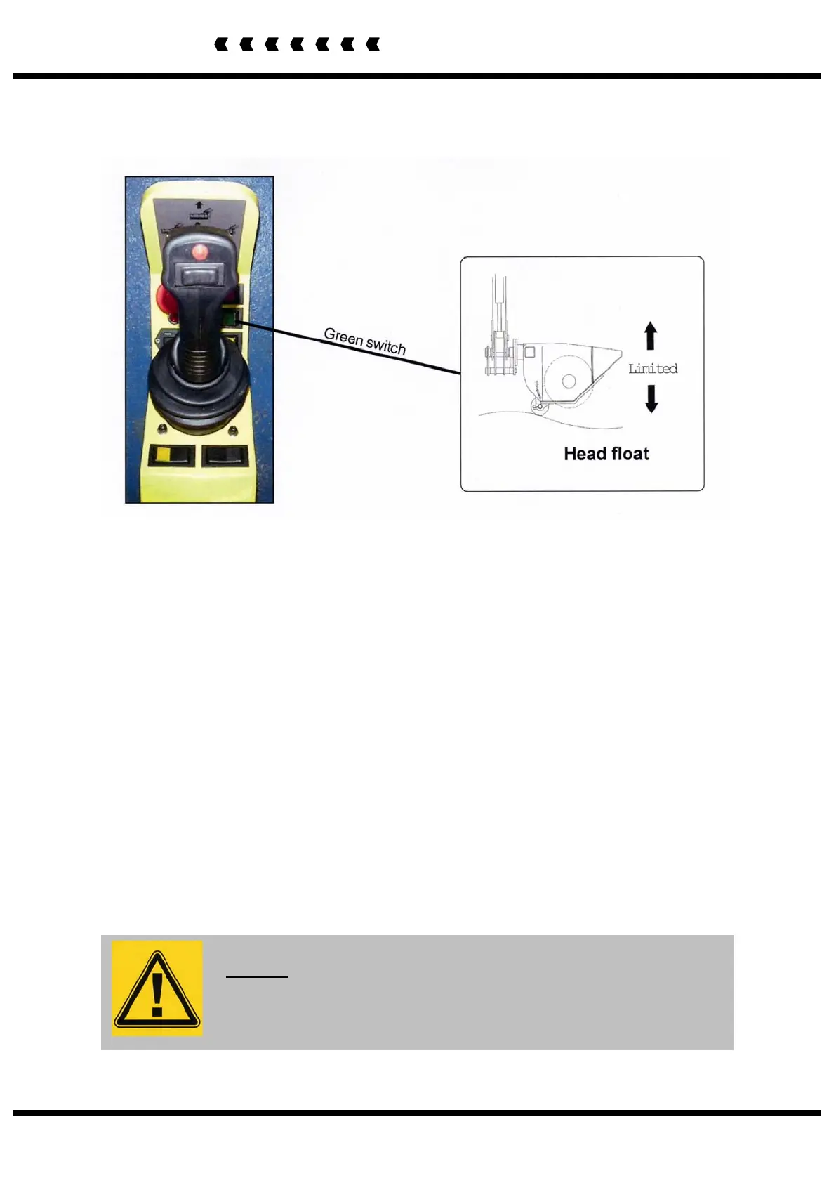 To select head float, first lower cutting head to the ground, disengage PTO and stop