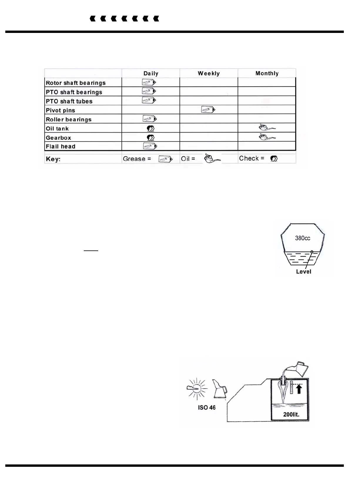 Gearbox oil level / quantity 380cc. Replace after 50hrs then once a year