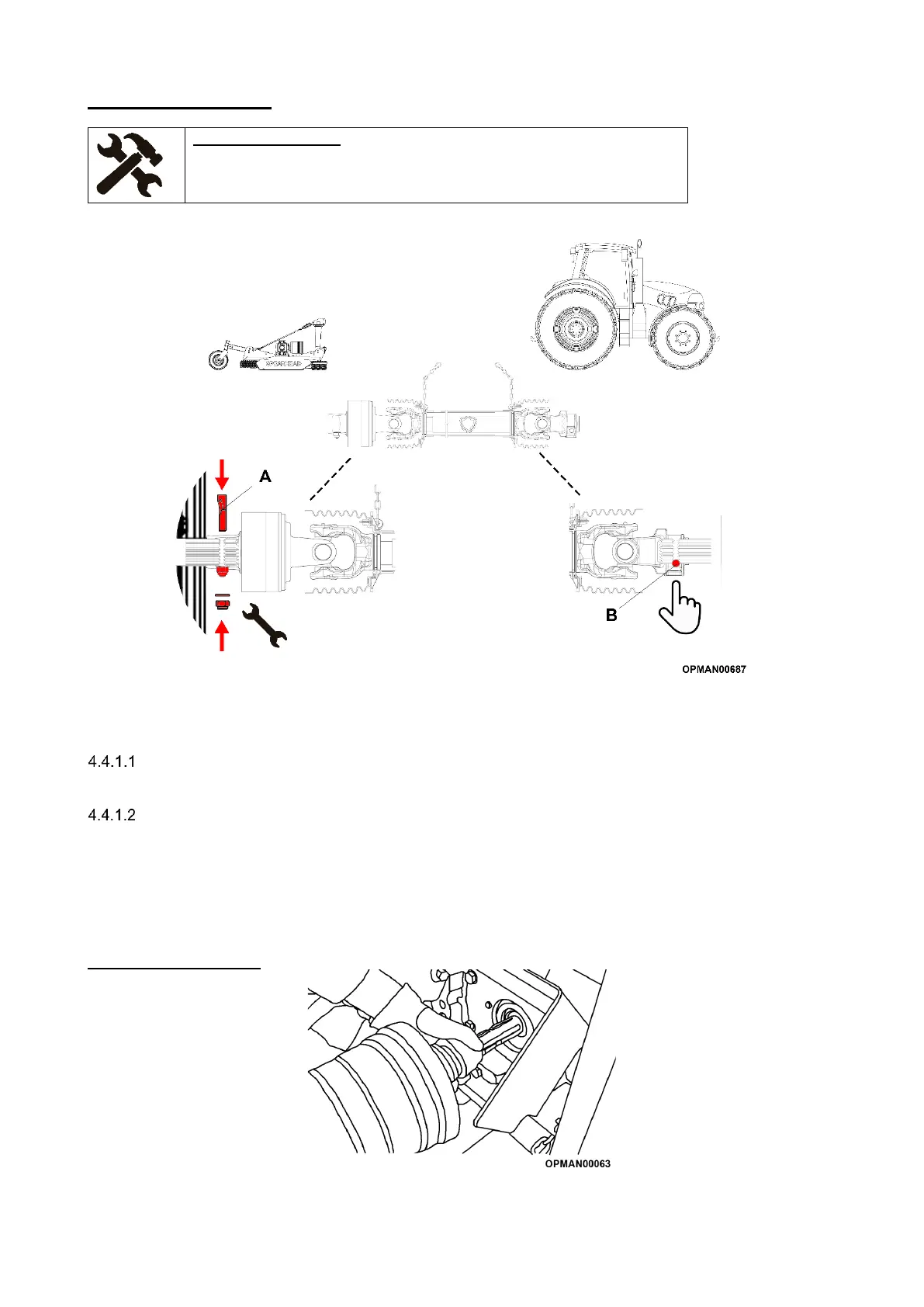 Proceed to remove the taper pin, flat washer and nut from the machine end of the input PTO shaft.