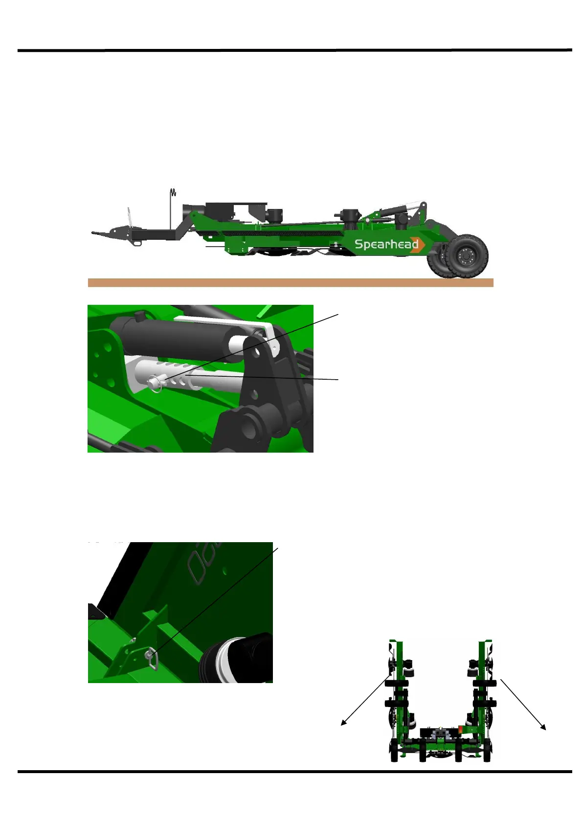 hydraulic rams before releasing locking pins and transport strap, lower wings by