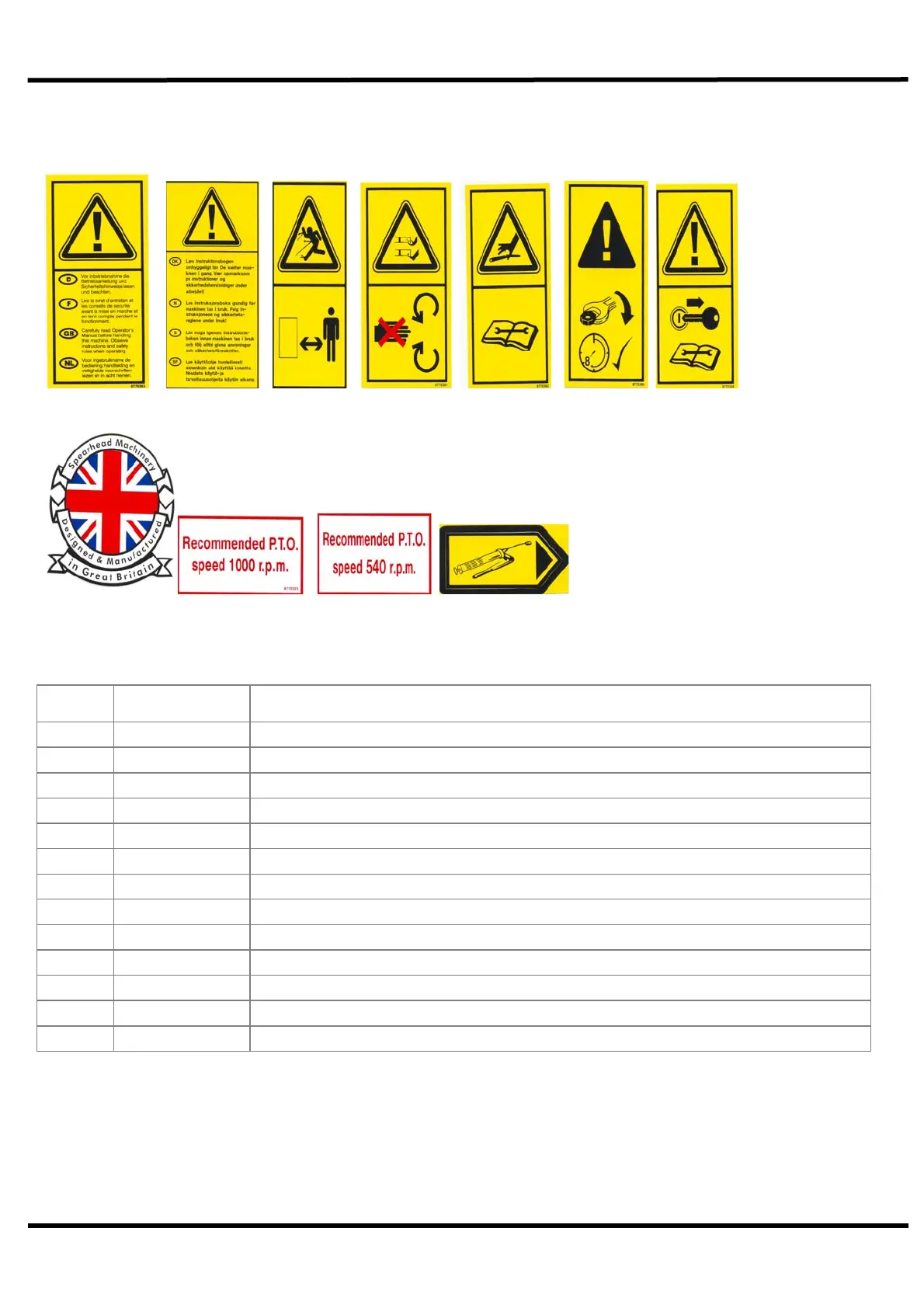 10 8770305 ‘RECOMMENDED PTO SPEED 540 RPM’ STICKER