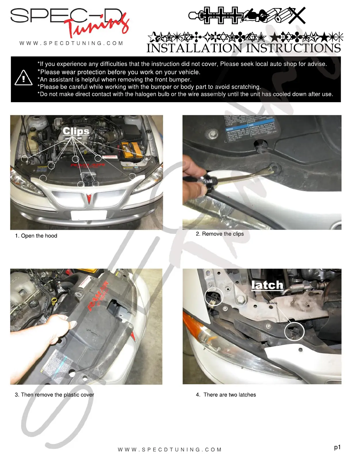 *Please be careful while working with the bumper or body part to avoid scratching.