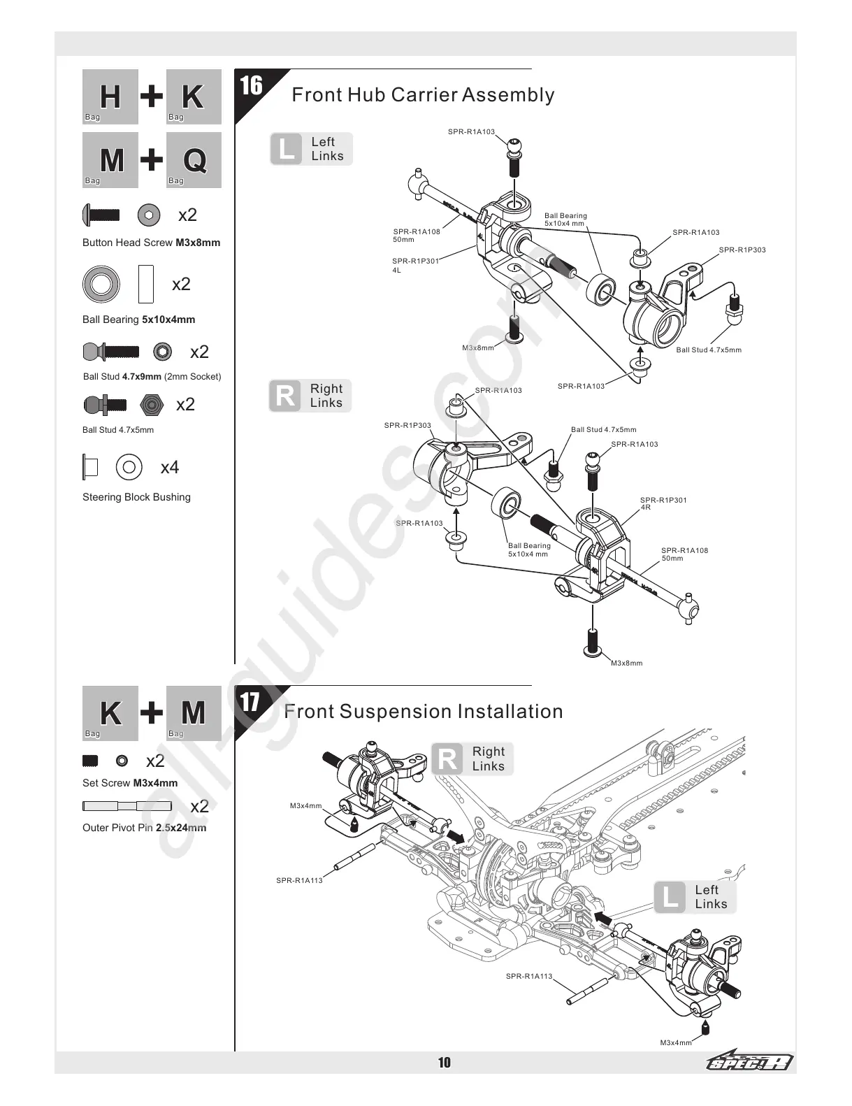 Spec-R S1 - 16 Front Hub Carrier Assembly; 17 Front Suspension Installation