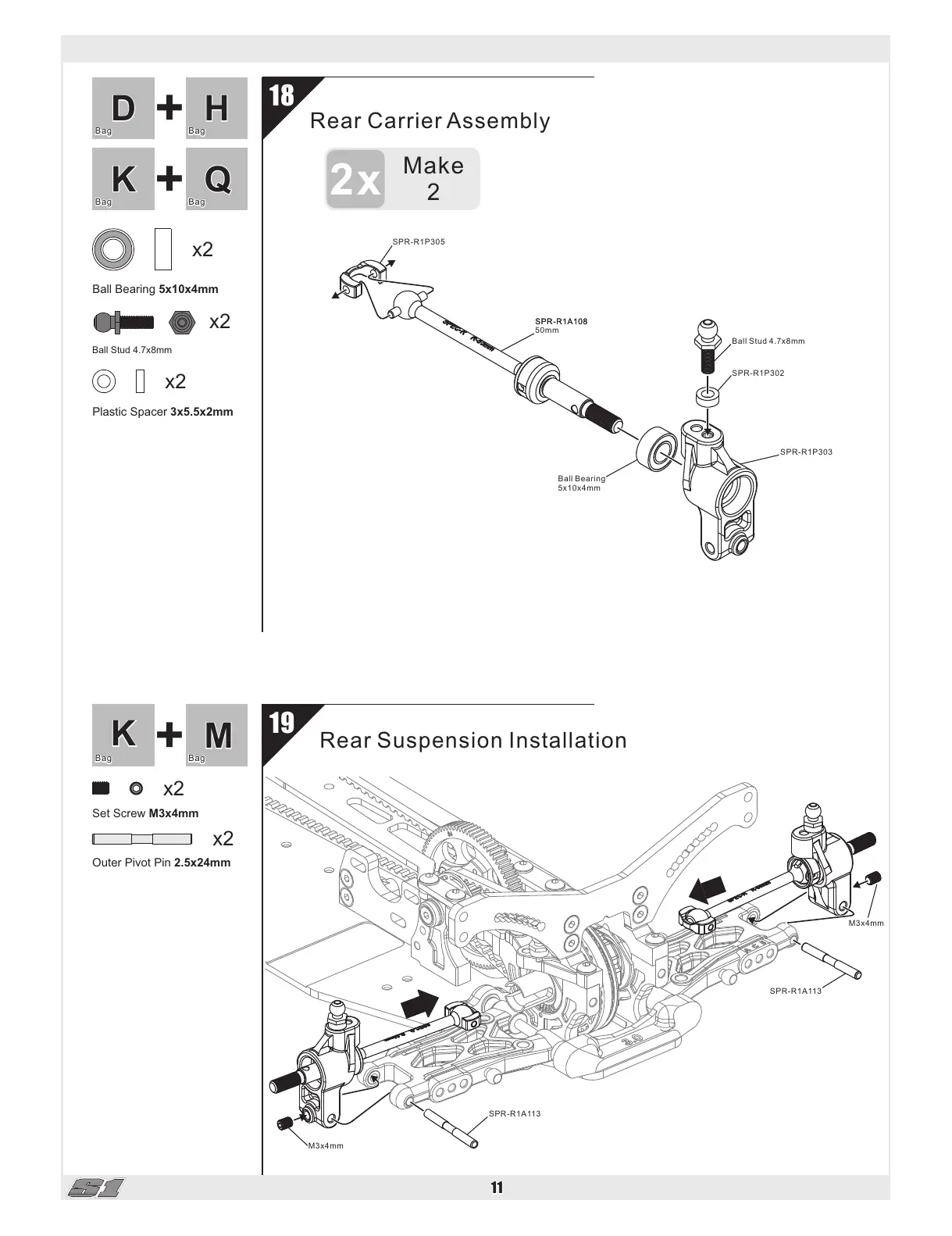 Spec-R S1 - 18 Rear Carrier Assembly; 19 Rear Suspension Installation
