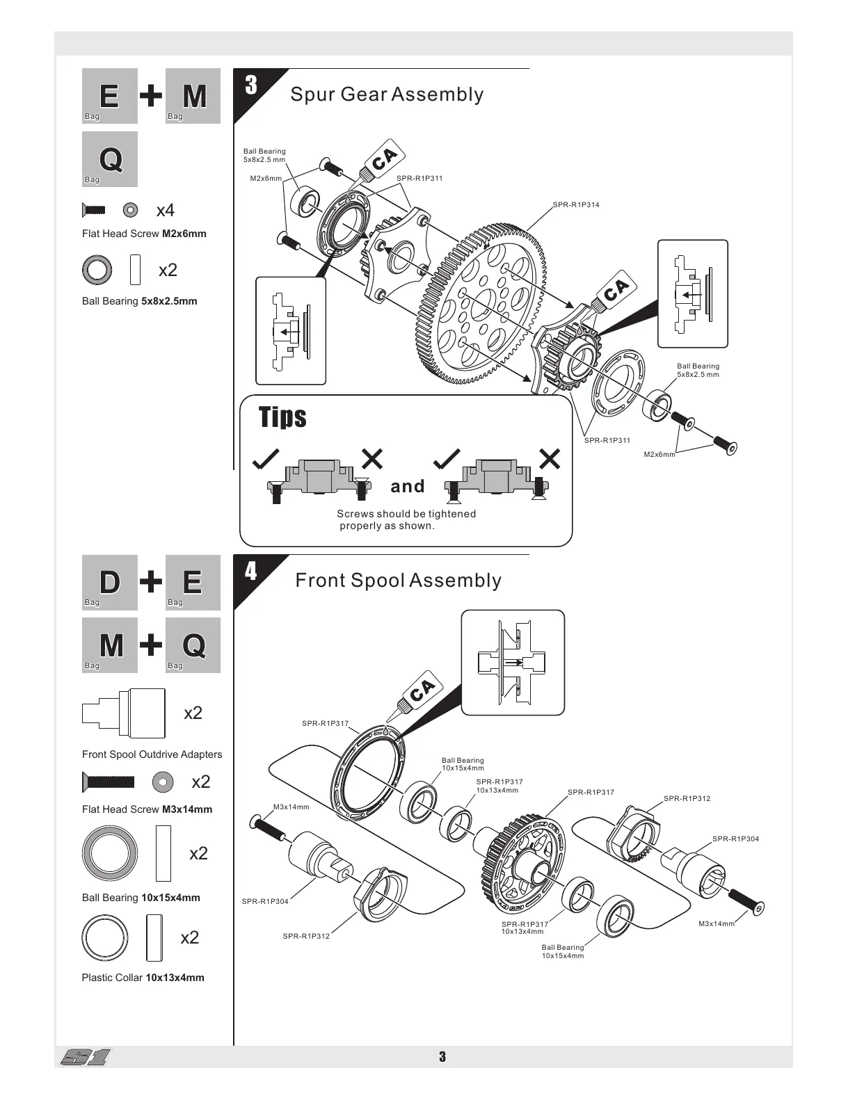 Spec-R S1 - 3 Spur Gear Assembly; 4 Front Spool Assembly