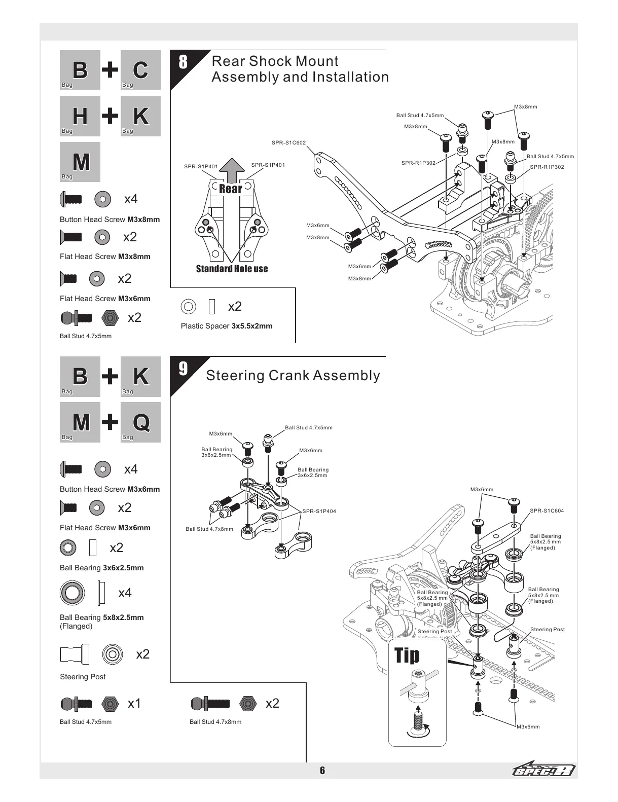 Spec-R S1 - 8 Rear Shock Mount Assembly and Installation; 9 Steering Crank Assembly