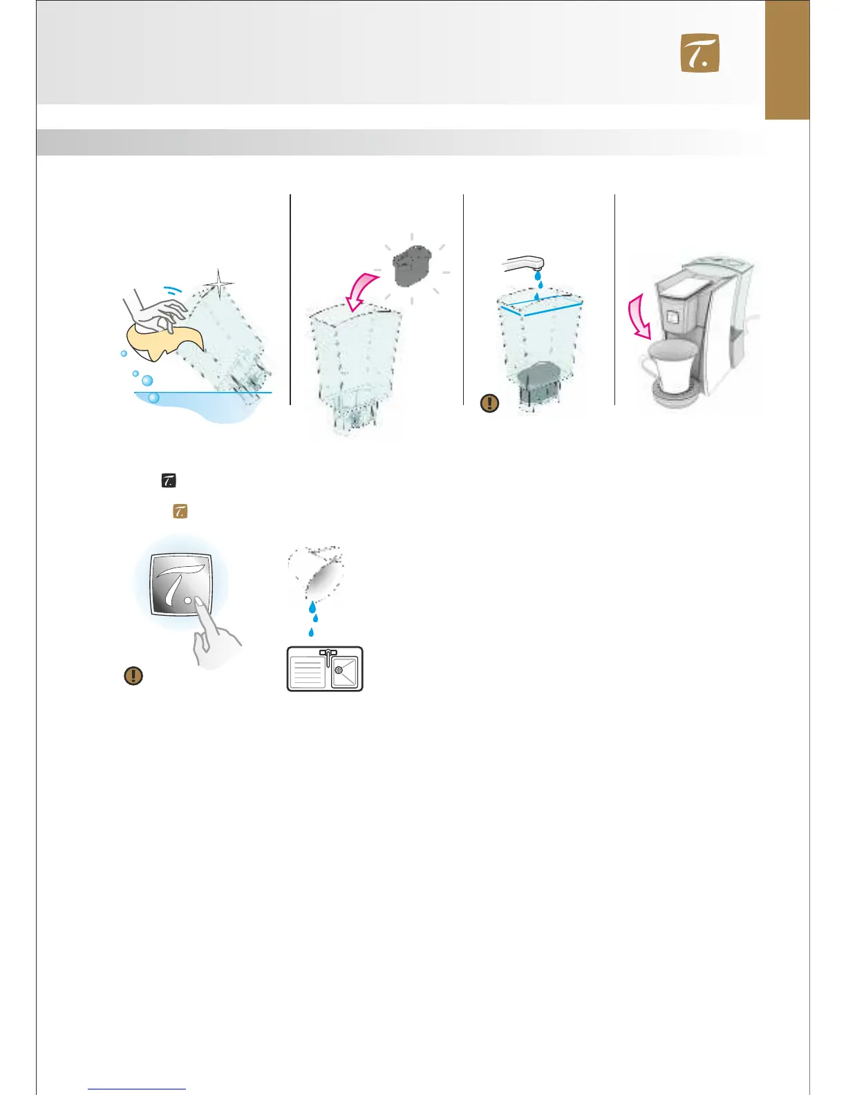 Presser jusqu’à ce que le réservoir d’eau soit vide et jeter le détartrant.