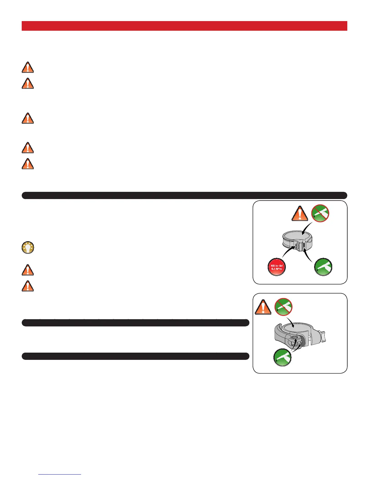 specific owner’s manuals for each mating component’s correct torque specifications. If the mating component’s recommended torque exceeds the