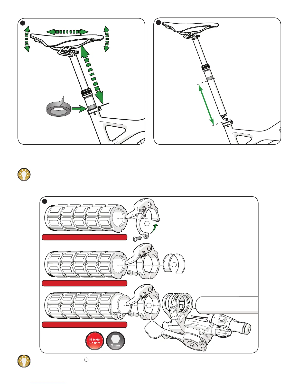 Fig.6: With the Command Post IR fully extended, determine saddle height as you would using a standard seatpost, then tighten the seat collar.