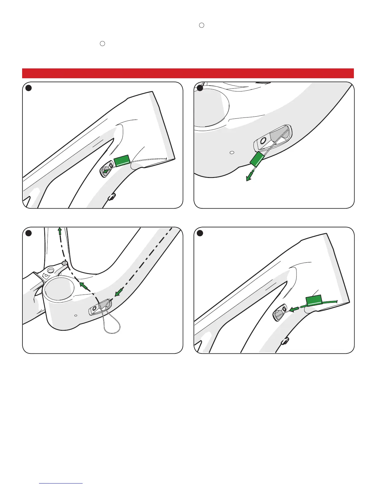 Fig.1: Insert a derailleur cable head-first into the entry port hole and run the cable down the down tube.