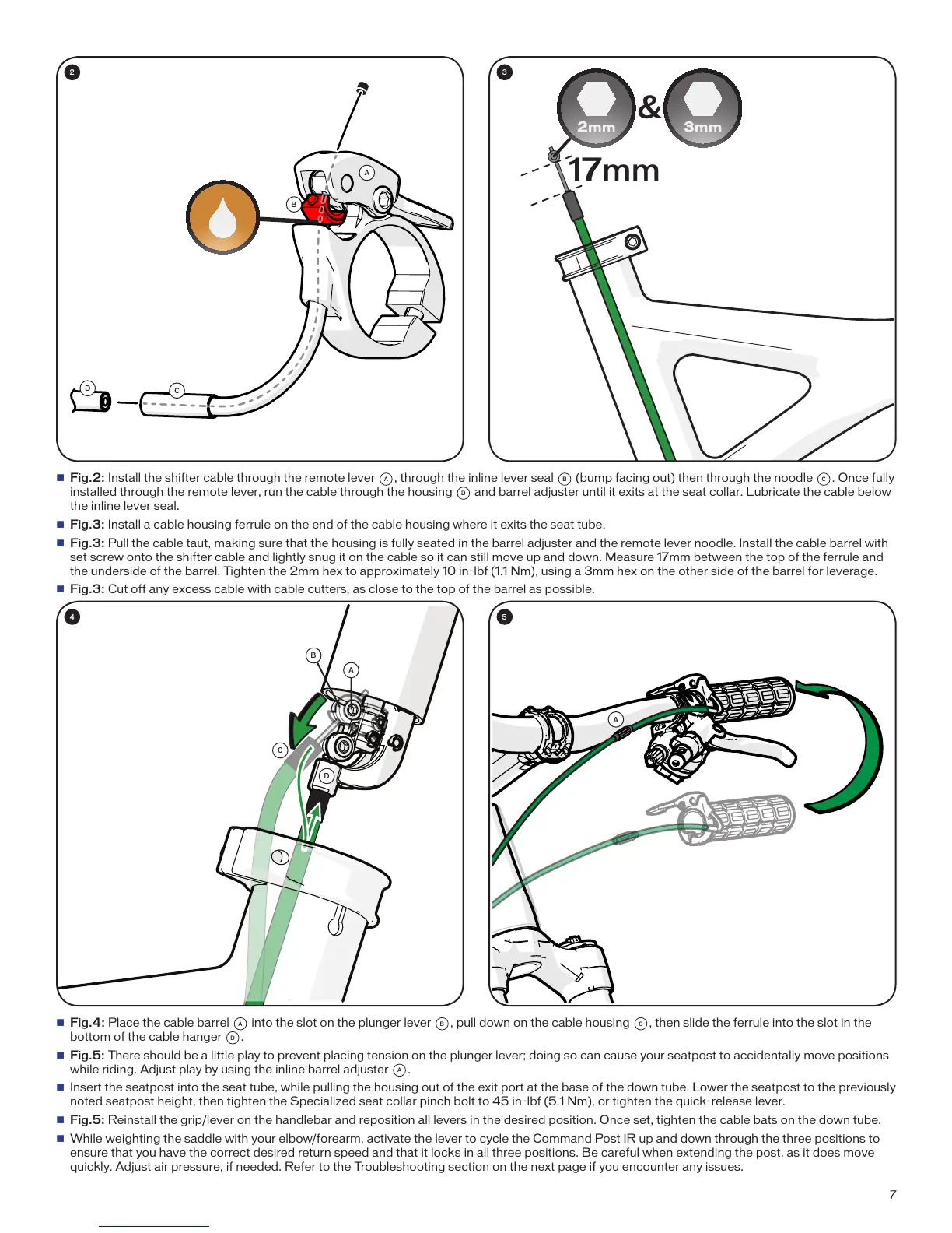 and barrel adjuster until it exits at the seat collar. Lubricate the cable below