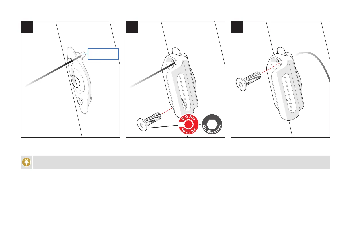 FIG. 5: Remove the cable by guiding it down the seat tube, then thread the upper bolt into the backing plate.