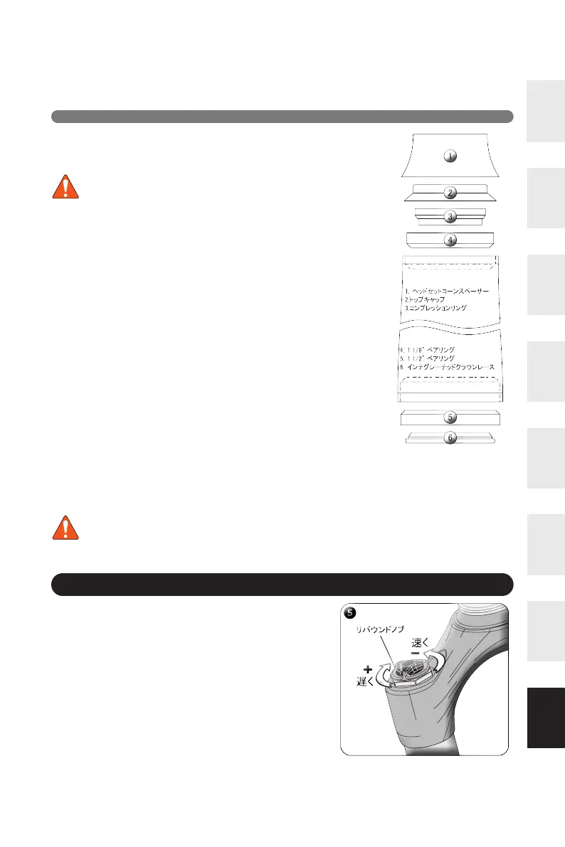 ヘッドセットの調整によりガタを取り除き、抵抗なくフォークが回転すること6.